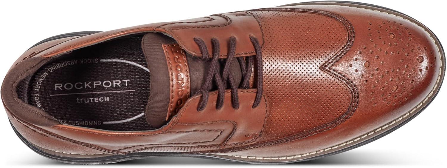A fashionable blend of comfort and functionality, the Rockport Coltin casual oxfords are the perfect wardrobe staple that can go from day to night. Featuring a lace-up design, round toe, and a cushioned insole. This shoe can take you where you need to be in style with its perfing and wingtip design. Featuring truTECH technology for lightweight shock absorption. This shoe is orthotic friendly.