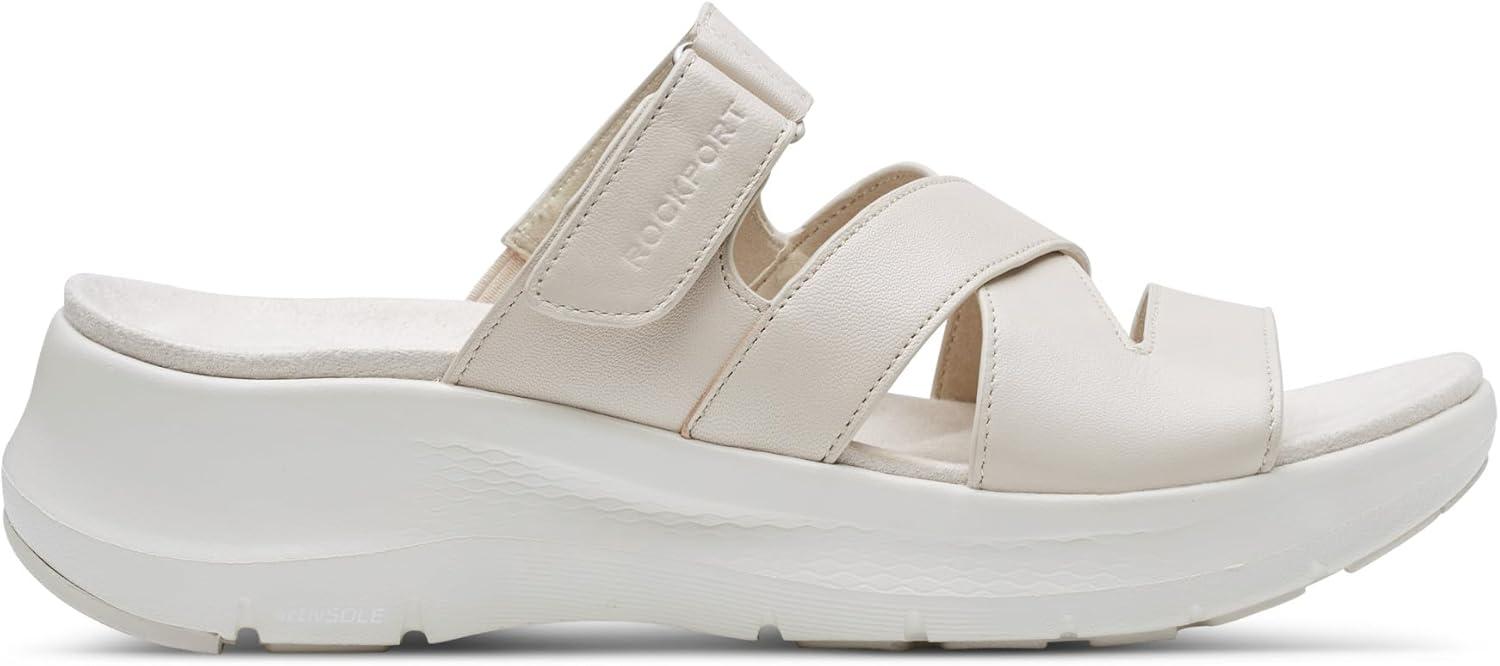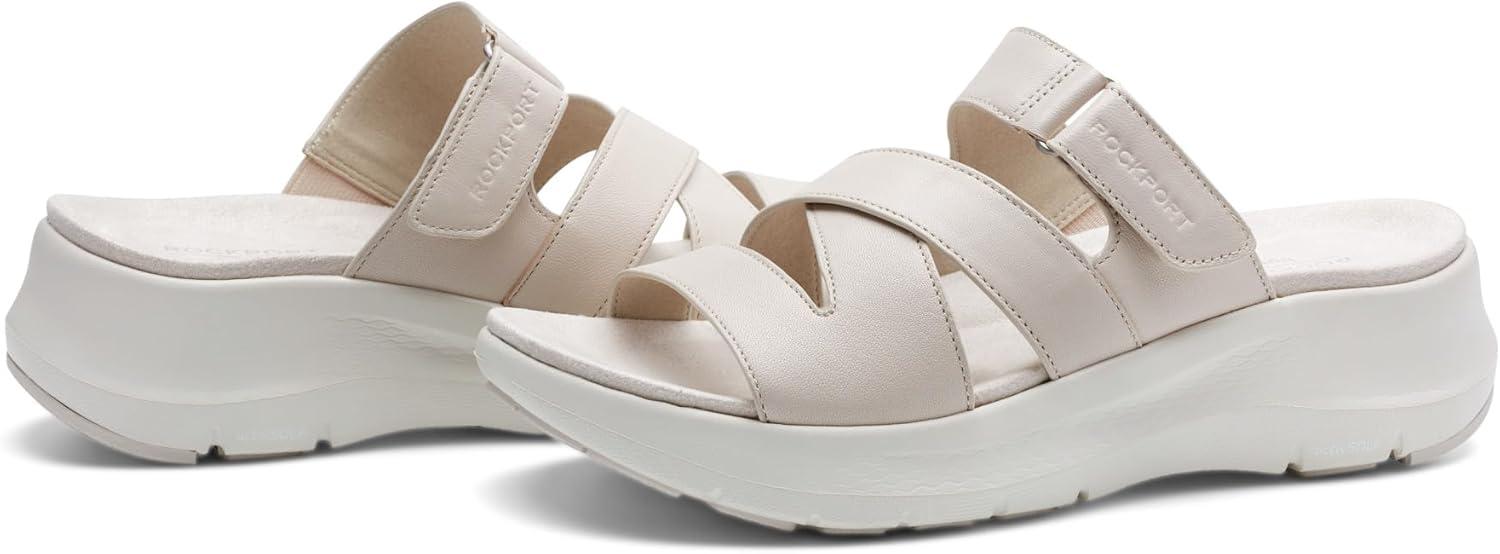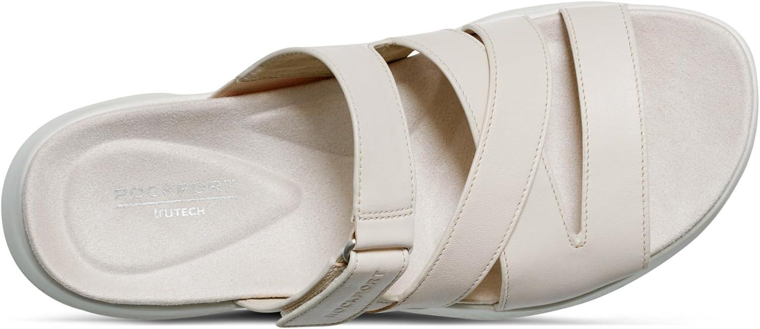 Simplicity and comfort blend together to bring you the Qwyn casual slip on sandal from Rockport. This sandal features a strappy silhouette and a modern square toe. This sandal will keep you feeling comfortable all-day. Featuring truTECH® technology for lightweight shock absorption.