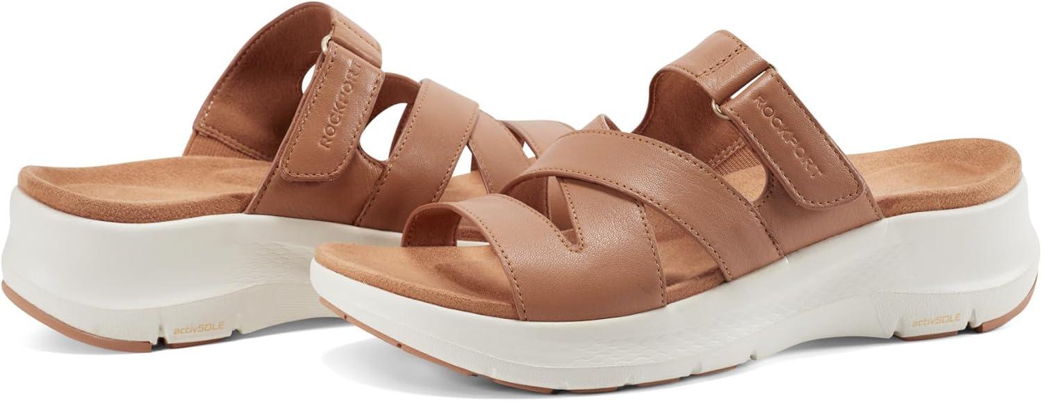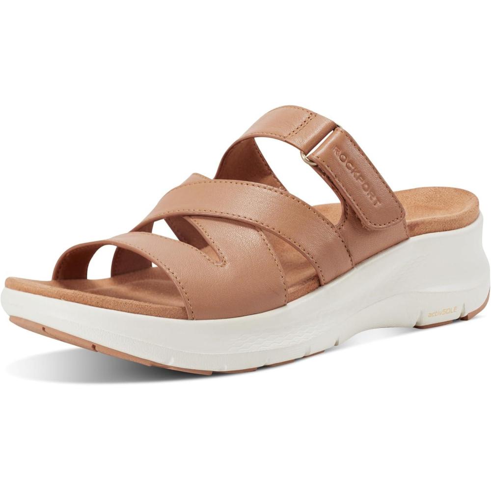 Simplicity and comfort blend together to bring you the Qwyn casual slip on sandal from Rockport. This sandal features a strappy silhouette and a modern square toe. This sandal will keep you feeling comfortable all-day. Featuring truTECH® technology for lightweight shock absorption.