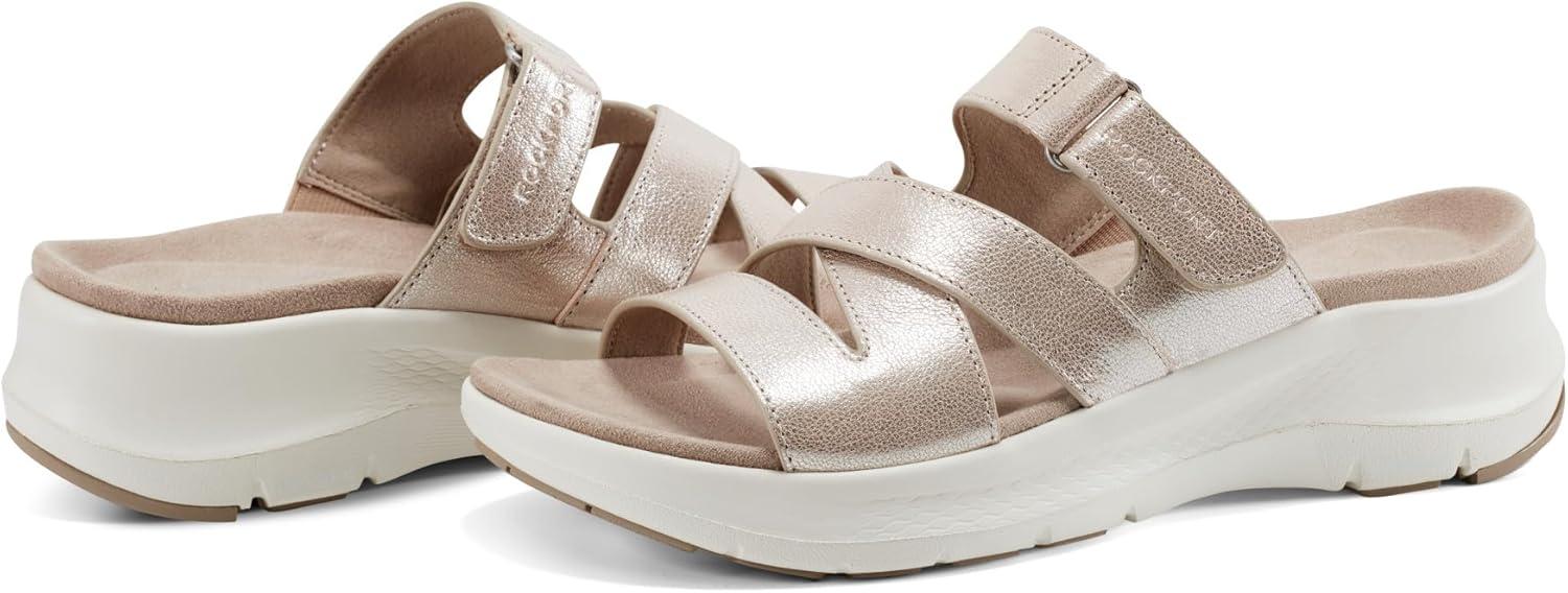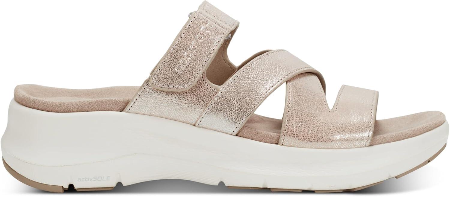 Simplicity and comfort blend together to bring you the Qwyn casual slip on sandal from Rockport. This sandal features a strappy silhouette and a modern square toe. This sandal will keep you feeling comfortable all-day. Featuring truTECH® technology for lightweight shock absorption.